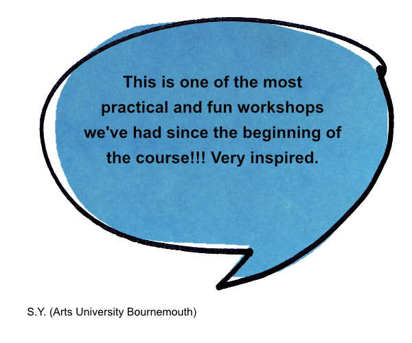 Encourages innovative storytelling with improvised visuals made from cardboard boxes. The session is engaging and challenging and results in puppet show style presentations to the group. It creates a positive buzz and has often revealed unexpected skills in participants.